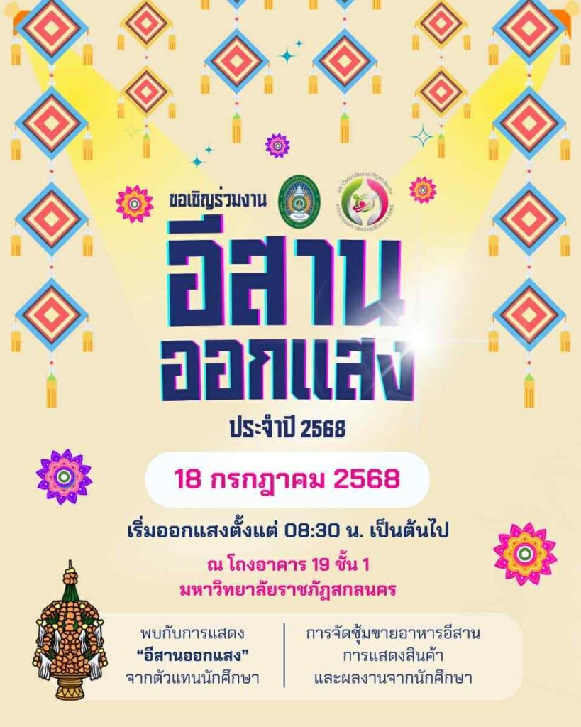 ทำนุบำรุงศิลปวัฒนธรรม 18 ตุลาคม 2025 admin งานอีสานออกแสง(การแสดงศิลปวัฒนธรรมอีสานร่วมสมัย)ชม ชิม ชอป ซุ้มอาหาร ผลิตภัณฑ์ และผลงานจากนักศึกษาคณะมนุษยศาสตร์และสังคมศาสตร์ณ โถงอาคาร 19 ชั้น 1 อาคารเรียนรวม ตั้งแต่เวลา 08.30 น. เป็นต้นไปขอเชิญทุกท่านมาม่วน มาจอย มาเบิ่ง มาแยง นำกันเด้อ Previous Post ปฐมนิเทศนักศึกษาใหม่ ประจำปีการศึกษา 2568